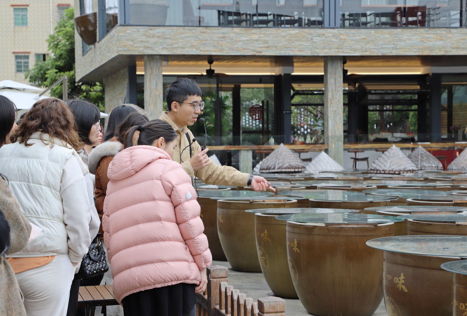 帶著對沉香文化的滿滿回味,女職工們移步至彌漫著濃郁生活氣息的非遺豆醬工坊,跟隨講解,參觀了解豆醬制作工藝——從挑選飽滿豆粒開始,蒸煮、拌曲、發(fā)酵……原本平凡無奇的黃豆在時間與匠心的雙重催化下,悄然完成一場華麗蛻變,醇厚馥郁的醬香悠悠飄揚在空氣中。