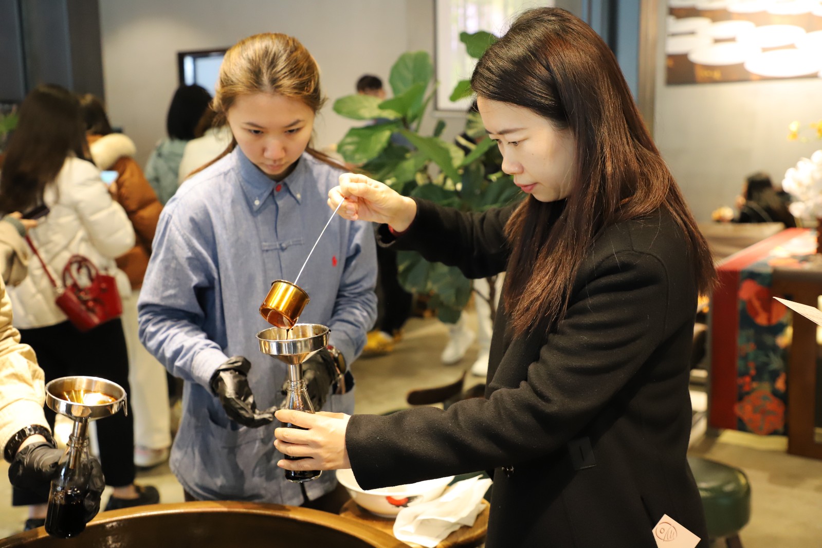 女職工們紛紛卷起袖子,興致勃勃地加入到“打醬油”的體驗環(huán)節(jié),琥珀色的醬油緩緩倒入親手挑選的瓶子,每一瓶都傾注了自己的熱情與專注,成為獨一無二、滿載回憶的美味珍藏。