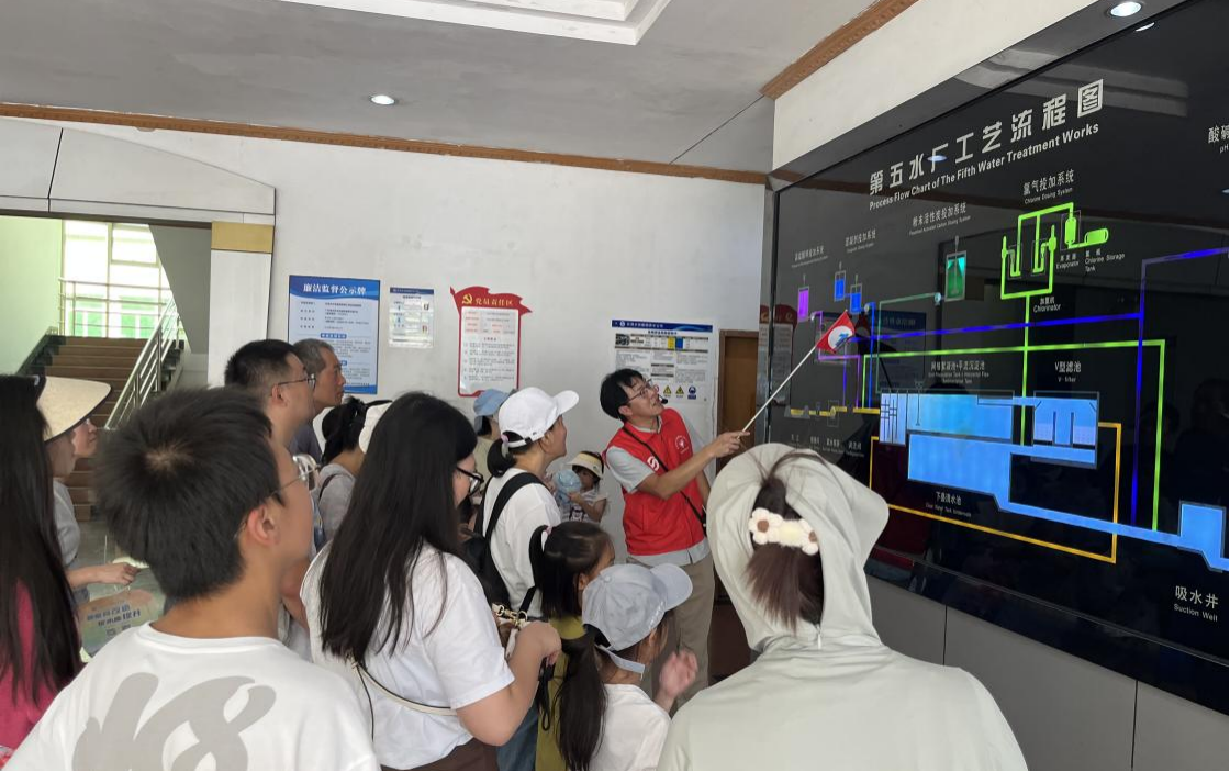 供水公司第五水廠開展以公益節(jié)水為主題的暑期開放日活動。活動邀請了陸遜梯卡華宏(東莞)眼鏡有限公司45名親子家庭成員,零距離體驗“一滴水的旅程”,讓家長和孩子們在參觀實踐中樹立節(jié)水意識。