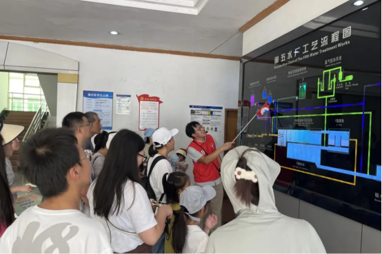 水務(wù)環(huán)境集團(tuán)下屬供水公司制水分公司結(jié)合水廠暑期開放日活動(dòng),加強(qiáng)與參與“百千萬·莞一夏”活動(dòng)企業(yè)的互動(dòng)交流,第五水廠于8月10日以公益節(jié)水為主題開展水廠開放日活動(dòng),活動(dòng)邀請(qǐng)到陸遜梯卡華宏(東莞)眼鏡有限公司45名親子家庭成員參與,通過零距離體驗(yàn)“一滴水的旅程”,讓參與者在參觀實(shí)踐中樹立節(jié)水意識(shí)。
