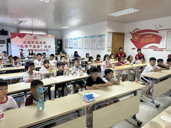 7月31日,水務(wù)環(huán)境集團(tuán)黨員干部到東城鰲峙塘社區(qū)開展黨員“雙報(bào)到”志愿活動(dòng),為孩子們帶來了一場(chǎng)趣味十足的“供水知識(shí)+健康防護(hù)”科普課堂。