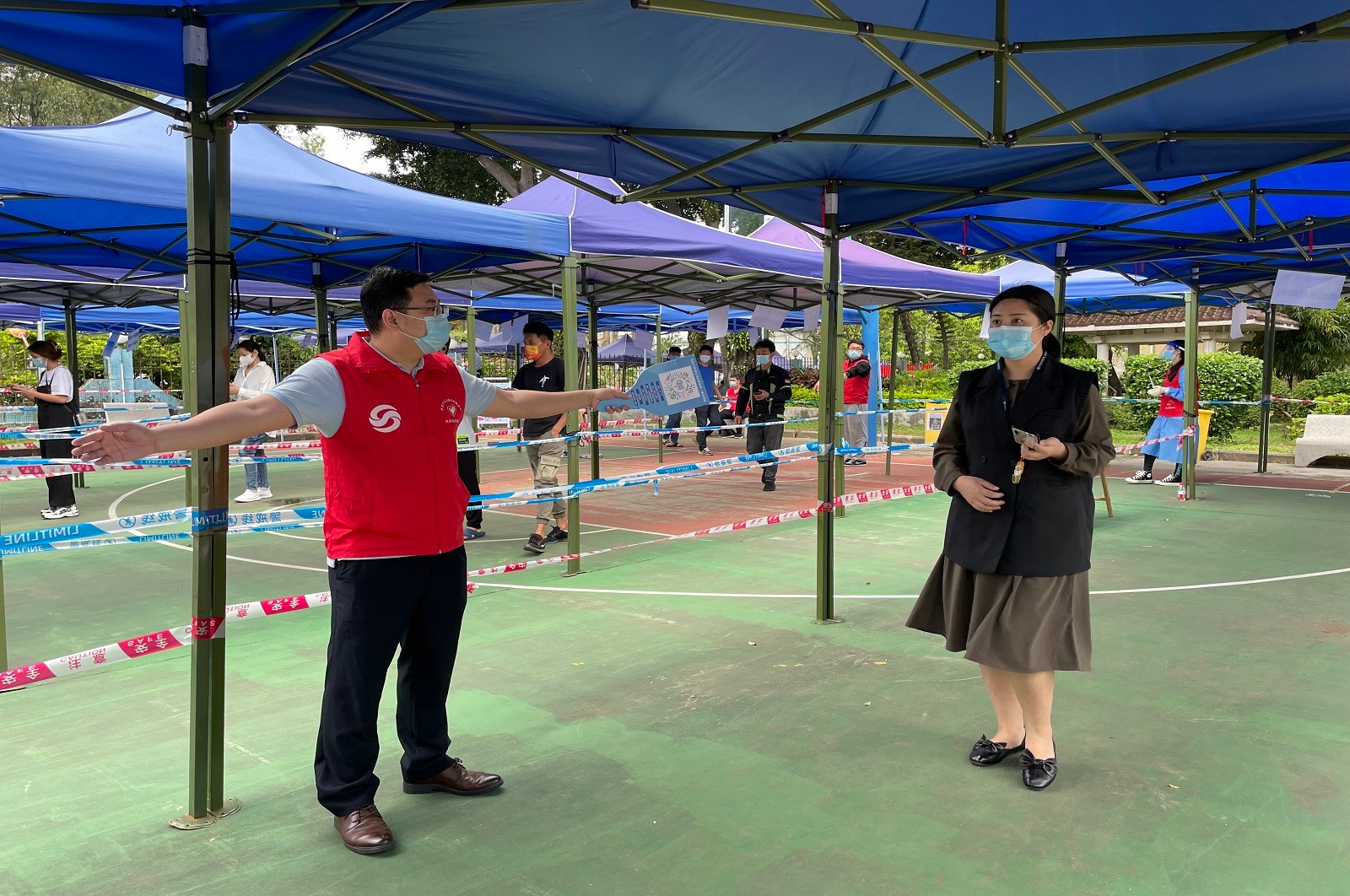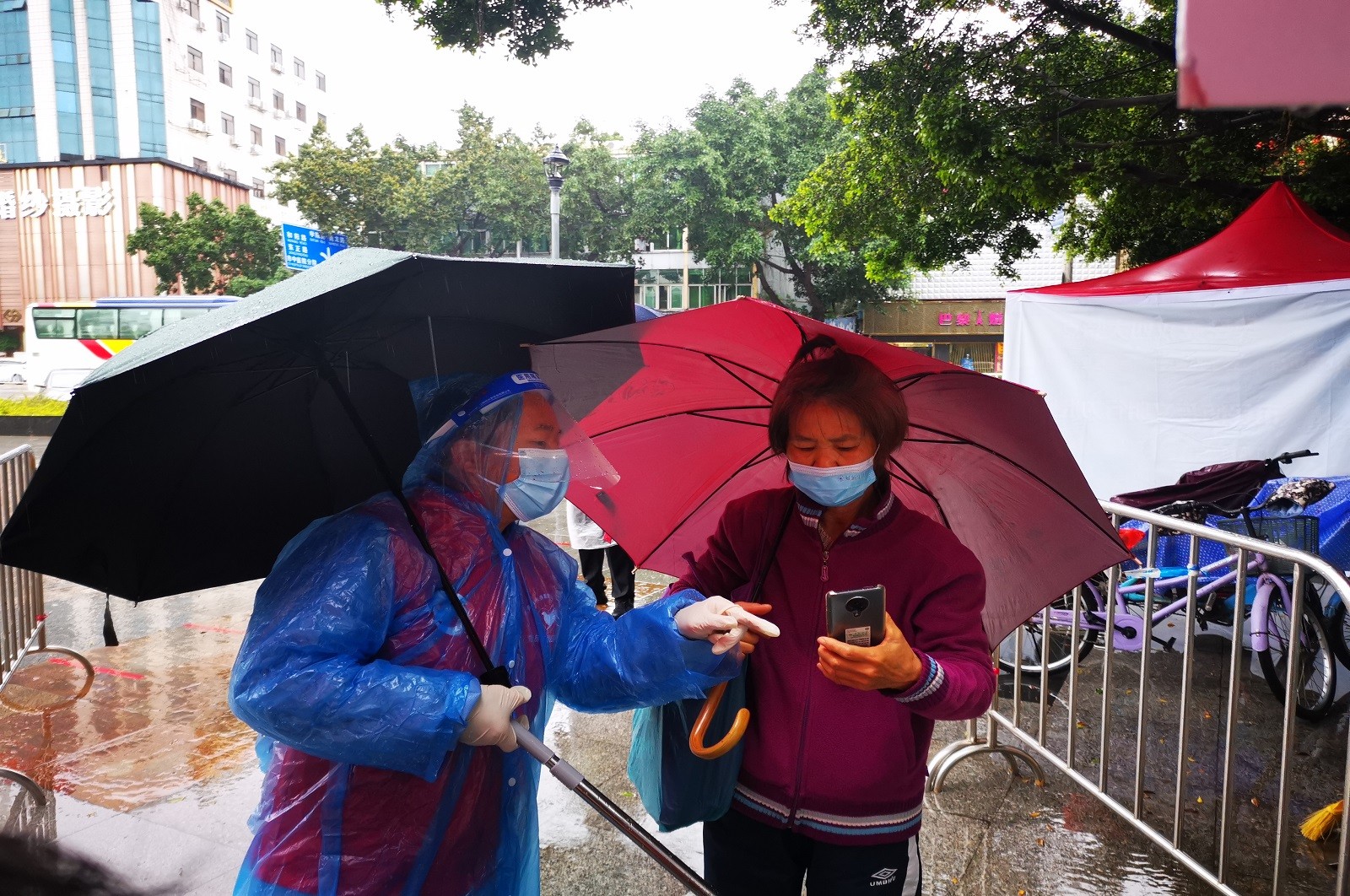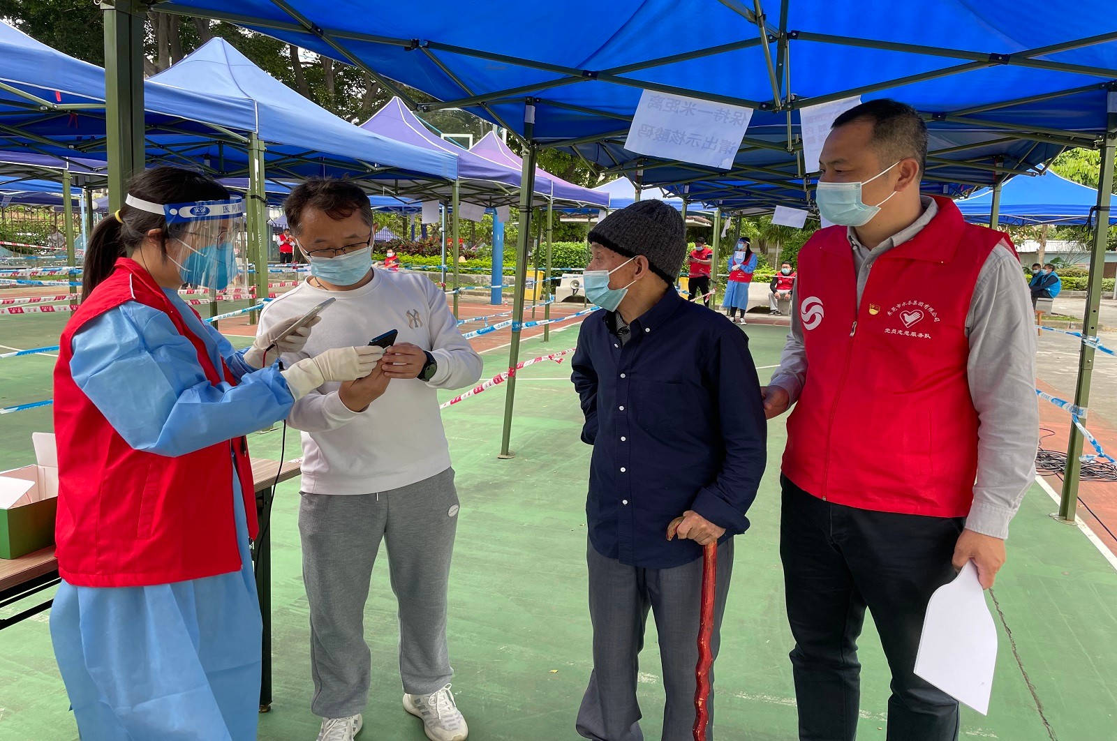 他們耐心協(xié)助查驗(yàn)市民粵康碼,引導(dǎo)市民填寫核酸檢測申請、測量體溫......