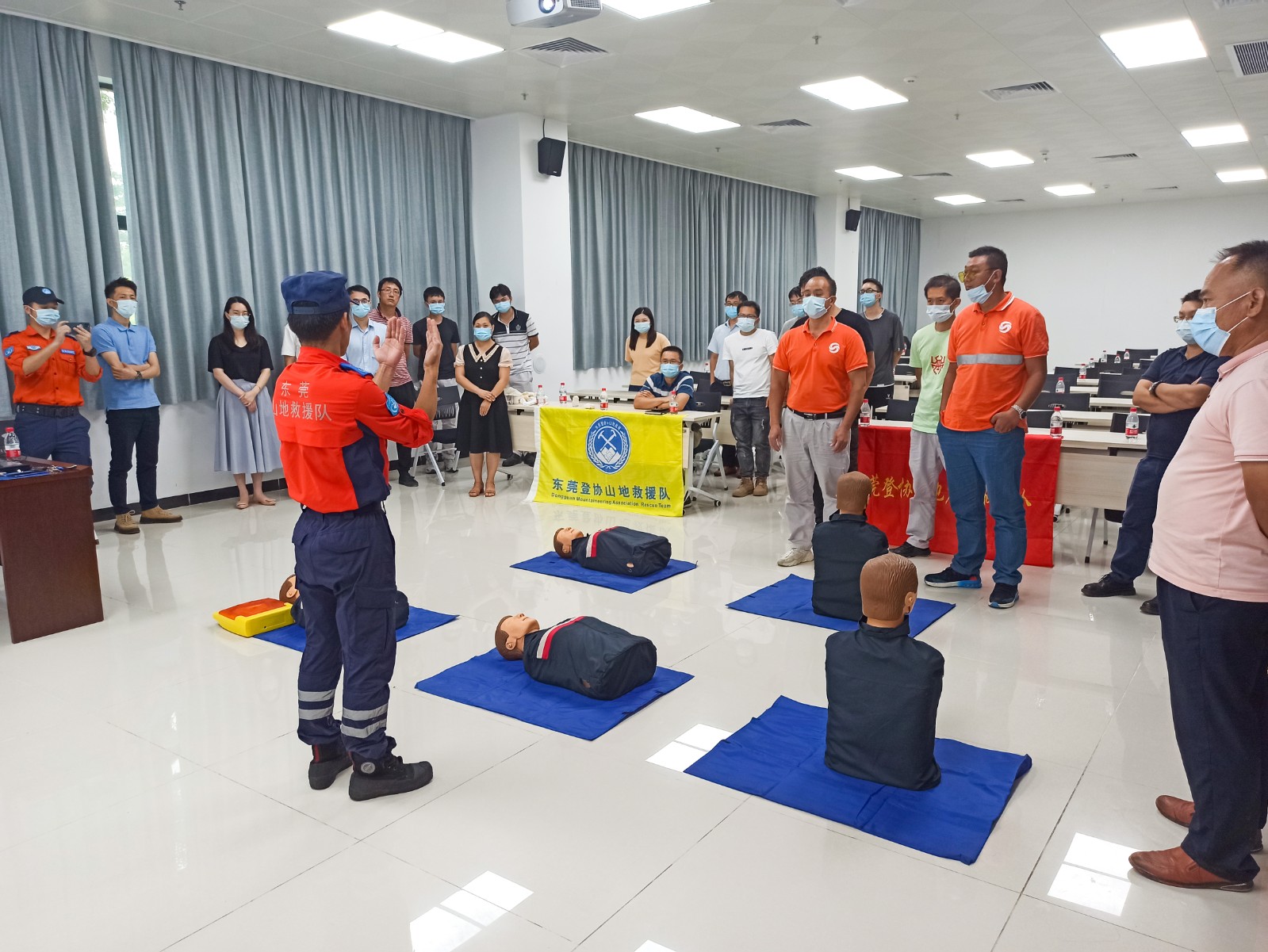 本次培訓(xùn)邀請到了東莞登協(xié)山地救援隊?wèi)?yīng)急宣教組進行上門授課,講座分為理論教學(xué)和實操演示兩個部分。