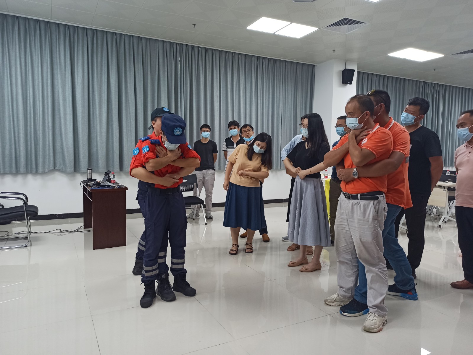 應(yīng)急宣教組為學(xué)員們親自示范出血包扎、心臟驟停和氣道異物梗阻急救的操作方法和步驟要領(lǐng),并一對一、手把手地指導(dǎo)學(xué)員們在工具人上進行模擬練習(xí)。