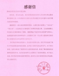 萬江敬老院向供水公司萬江分公司黨支部致感謝信