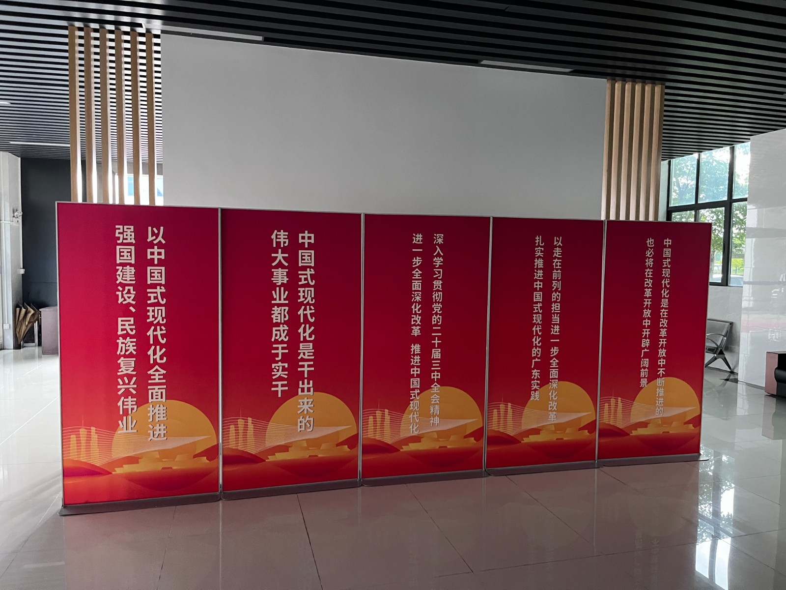 左圖:科技公司布置宣傳標(biāo)語展