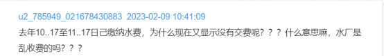 在此期間,如您發(fā)現(xiàn)2023年1月-3月期間的水費(fèi)賬單比同期有所增加,很有可能是需要對(duì)之前緩繳的污水處理費(fèi)和垃圾費(fèi)進(jìn)行補(bǔ)繳,您可通過(guò)網(wǎng)上營(yíng)業(yè)廳,進(jìn)入“水費(fèi)查繳”,自助查詢當(dāng)月水費(fèi)明細(xì)。