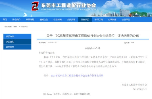 喜!恒業(yè)公司榮獲“2023年度東莞市工程造價(jià)行業(yè)協(xié)會(huì)先進(jìn)單位”稱(chēng)號(hào)