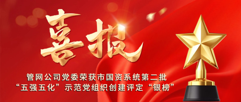 喜報(bào)!管網(wǎng)公司黨委榮獲市國資系統(tǒng)第二批“五強(qiáng)五化”示范黨組織創(chuàng)建評定“銀榜”
